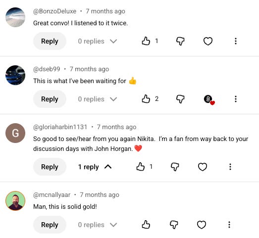 The first one took place on Robert Wright’s Nonzero channel and derived most of its meaning from our engagement with callers — our main stated goal was to turn the Nonzero audience into a Nonzero community (an on-going project: here we are on Discord; and there’s a reading club on Saturday). Two of the four recordings were posted at the Nonzero podcast feed, and the rest dissipated into the ether.