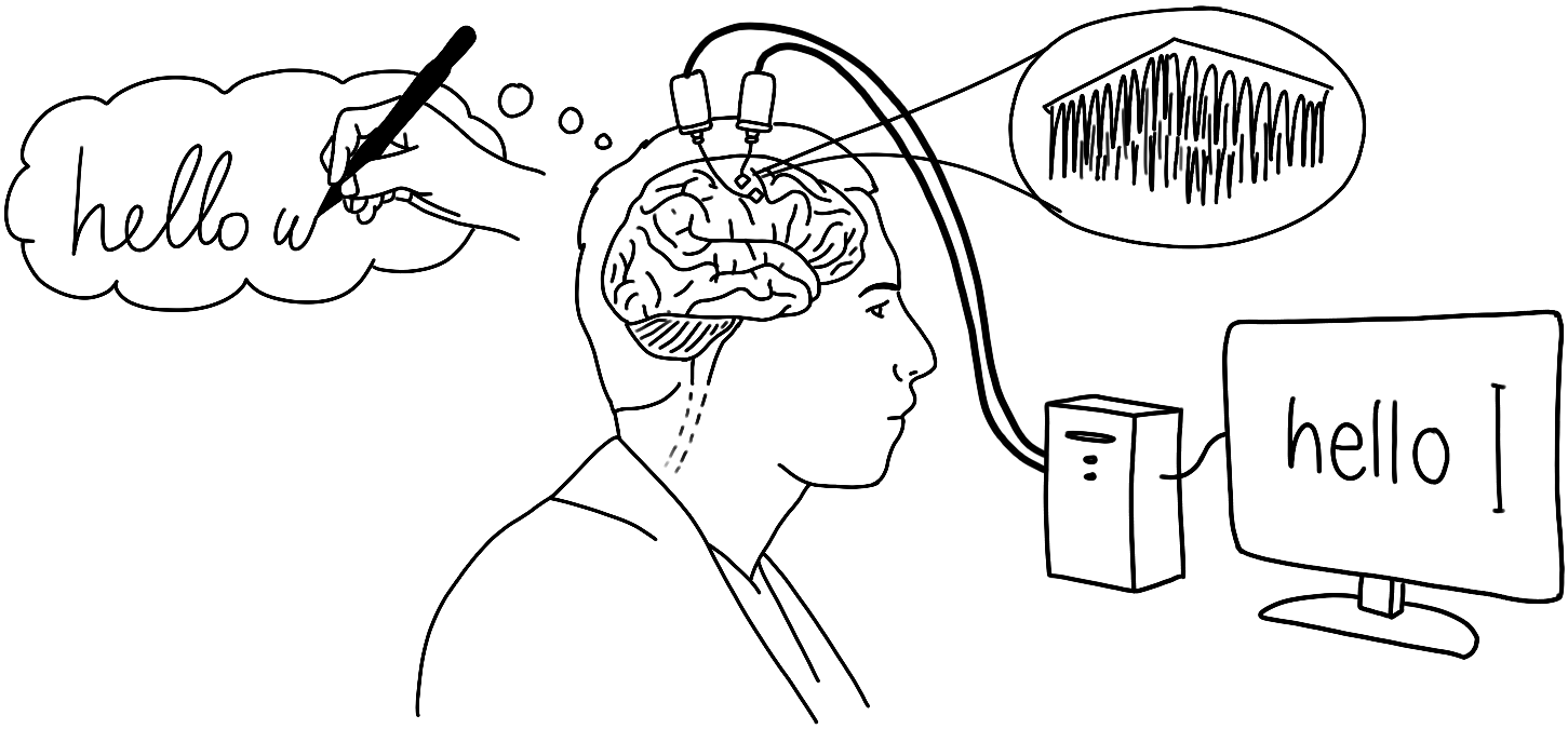 While the man concentrated as if writing longhand, electrodes in his motor cortex sent signals through algorithms running on an external computer, which translated them into written language.